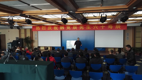 2016年元旦,韩氏意拳弟子及亲朋好友齐聚蚌埠,庆祝韩竞辰老师六十寿辰。弟子们为师父捧上鲜花和蛋糕,恭祝师父健康长寿。